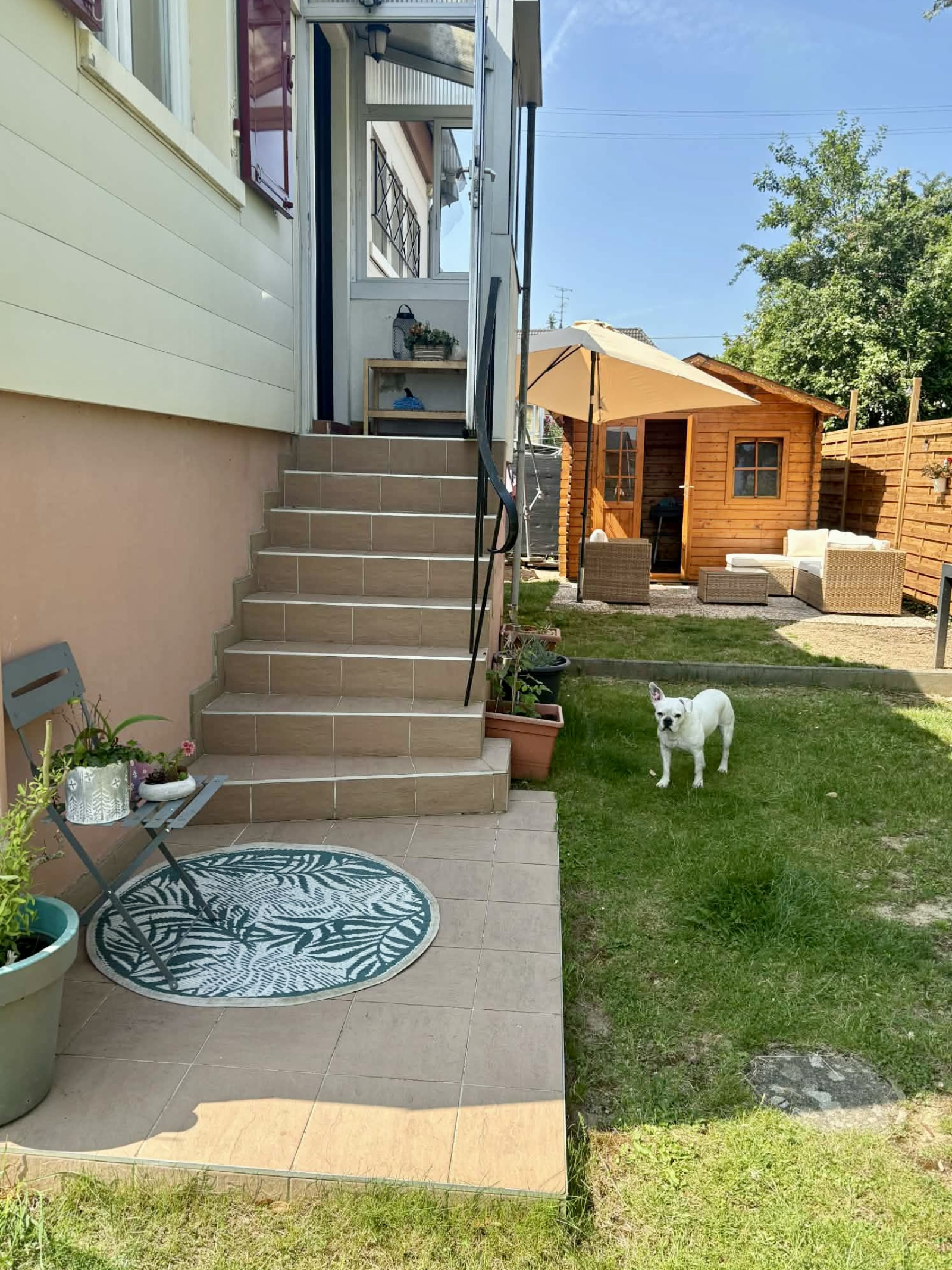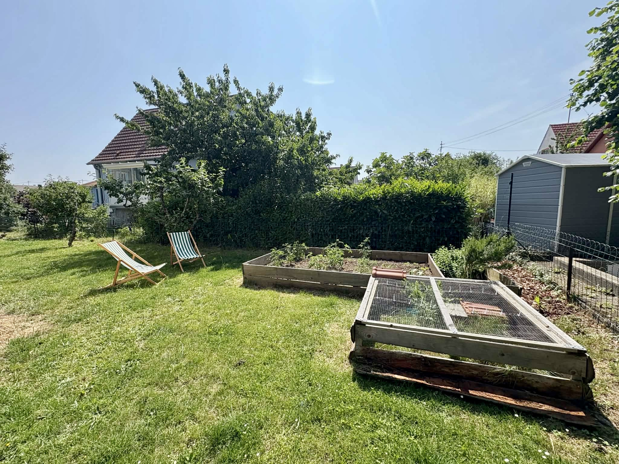 À l’extérieur, vous profiterez d’un jardin entièrement clôturé, agrémenté d’une terrasse, d’une cabane de jardin et d’un portail automatique.
