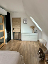 À l’étage, vous découvrirez une suite parentale avec salle de bain et WC, ainsi qu’une seconde chambre.