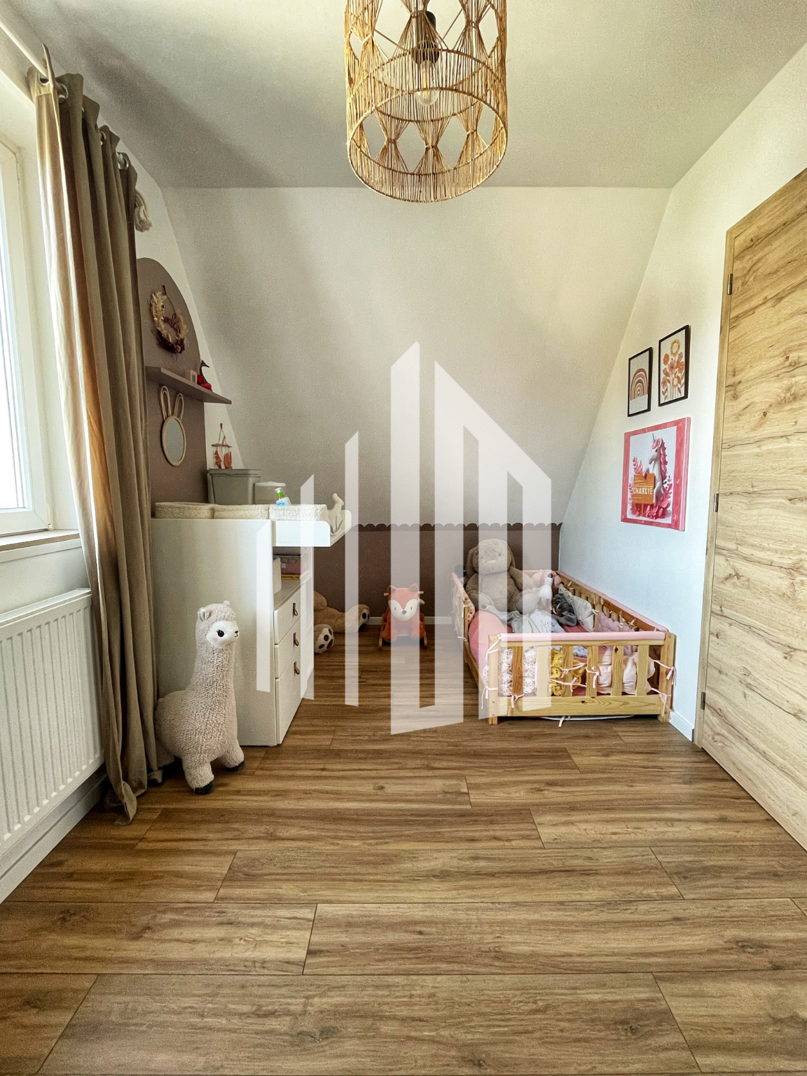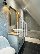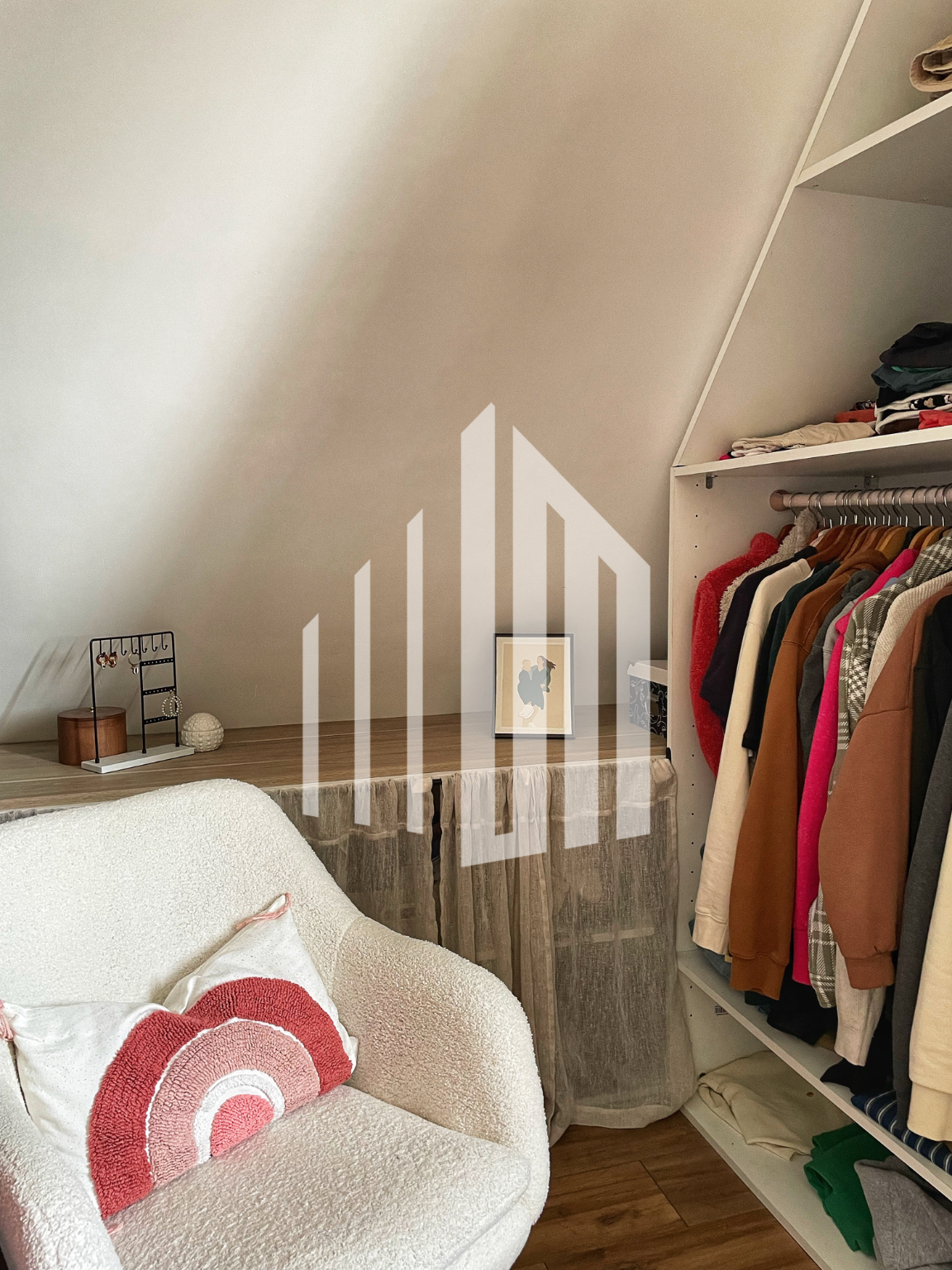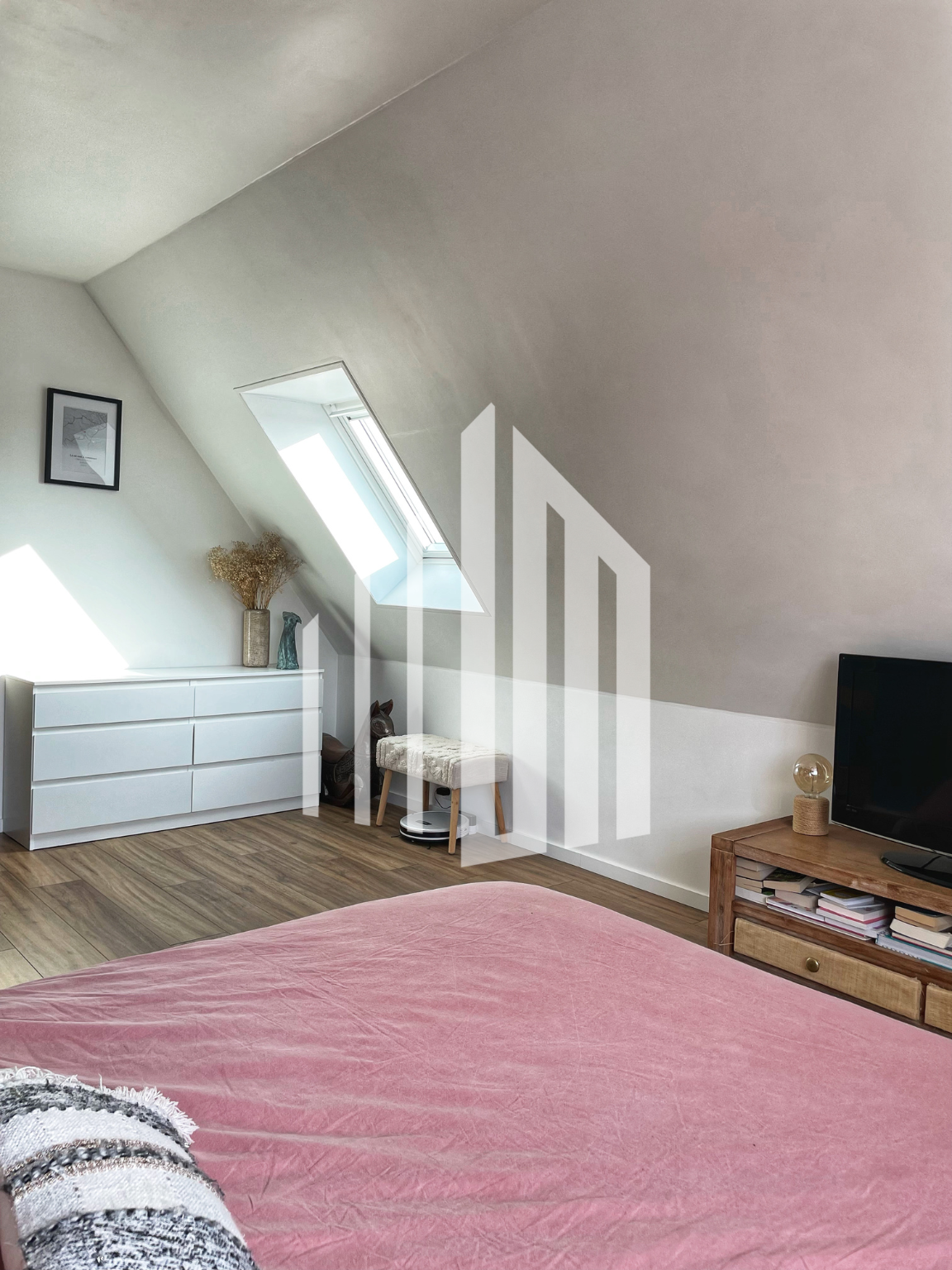 À l’étage, l’espace nuit se compose d’une belle suite parentale avec salle de bains et WC, ainsi que d’une seconde chambre, idéale pour un enfant, un bureau ou une chambre d’amis.